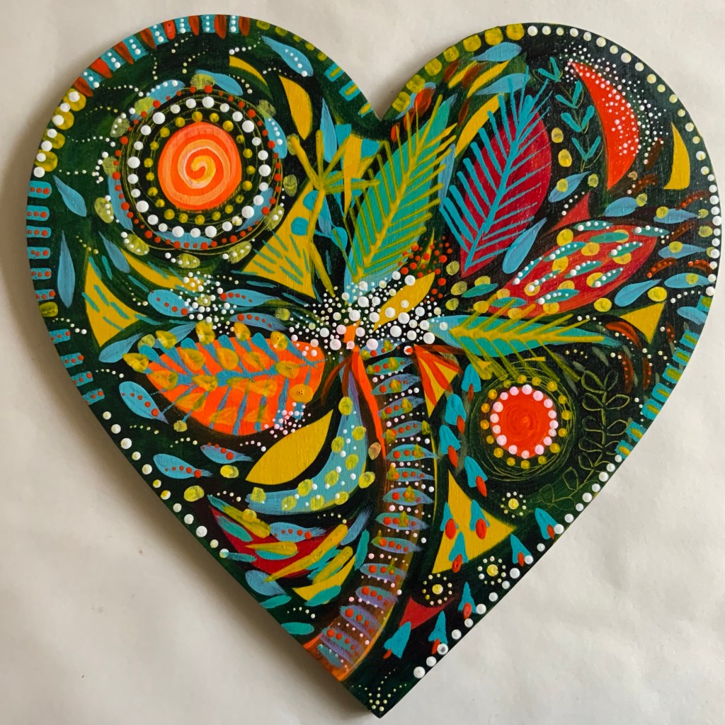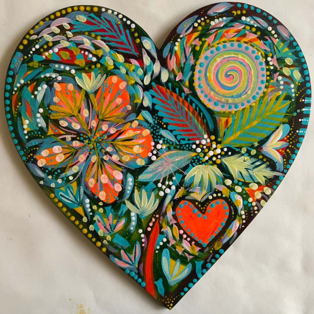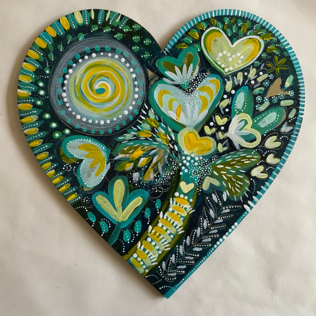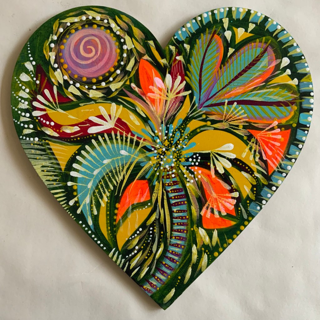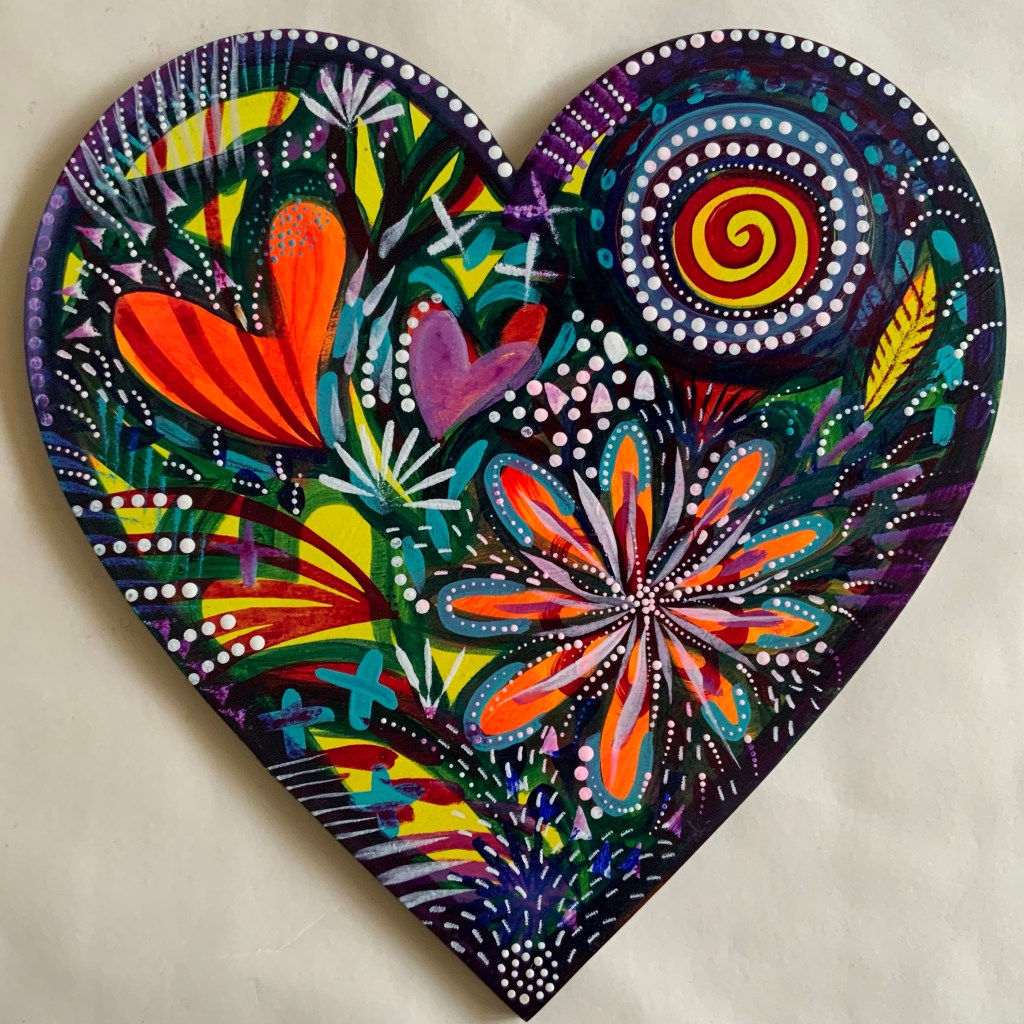 Choose from 30 hand painted original heart paintings completed during January 2022. Gift some one you love with a painting that will last longer than flowers. Or of course you can gift to yourself to bring some folk art style colour into your home.