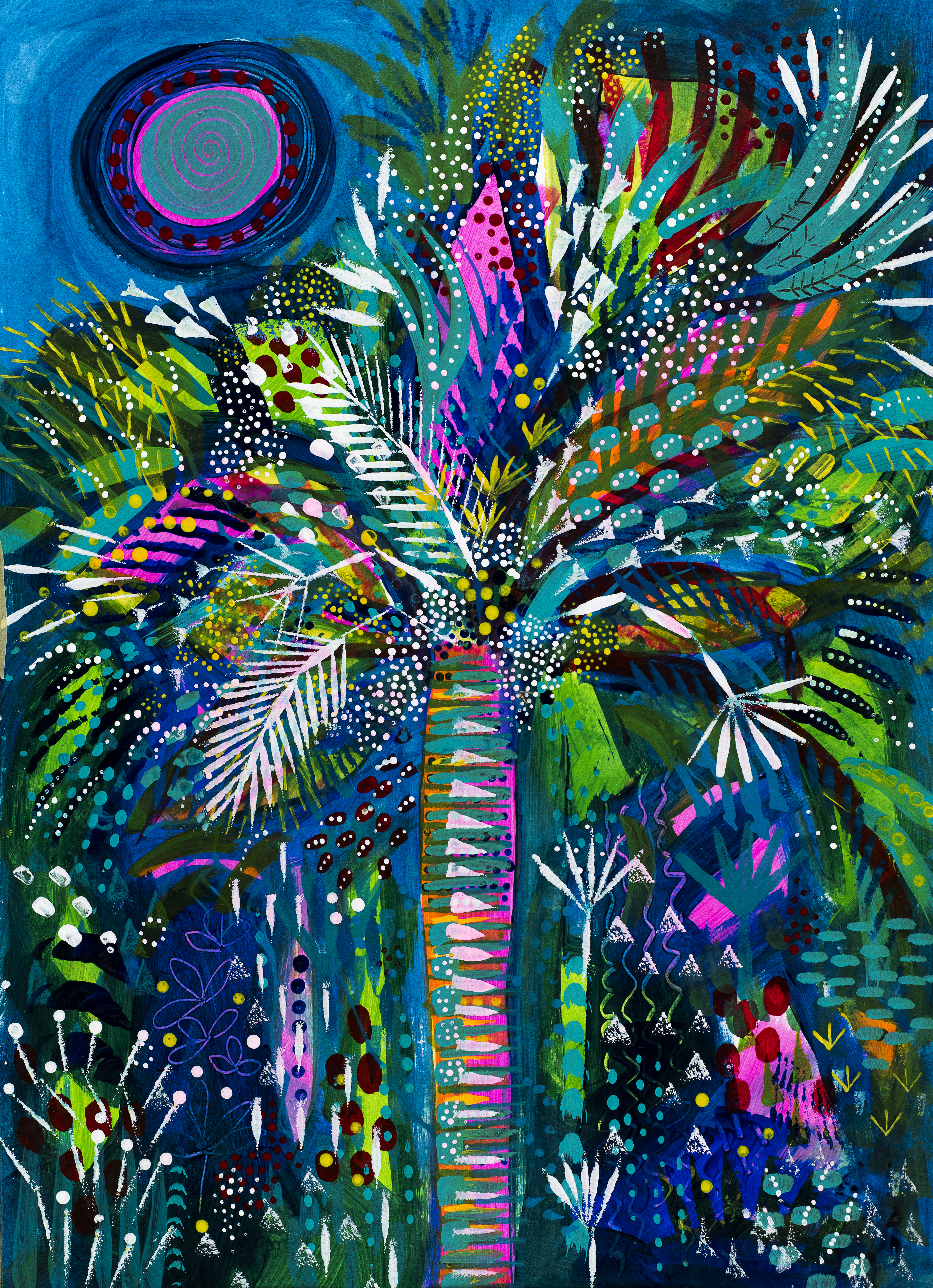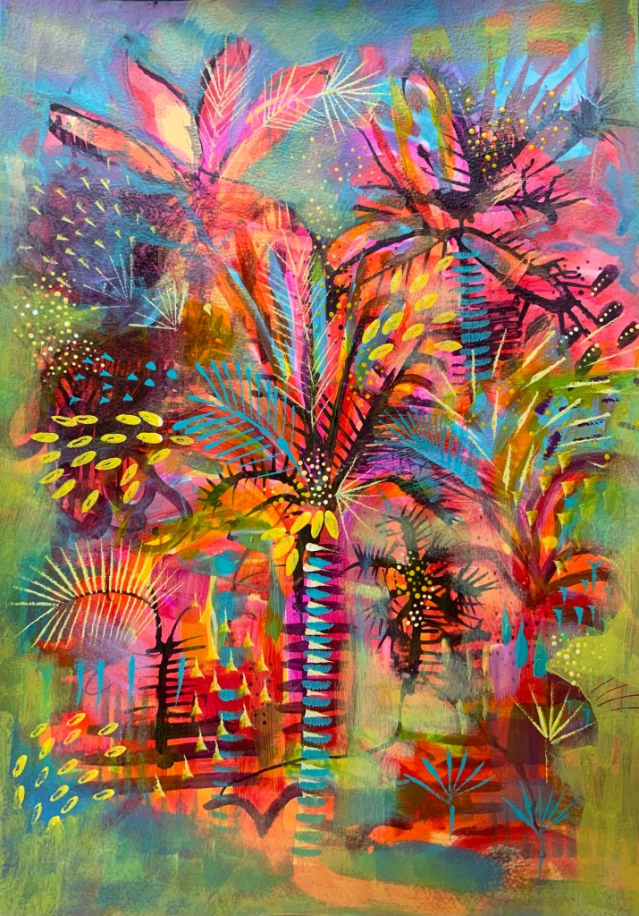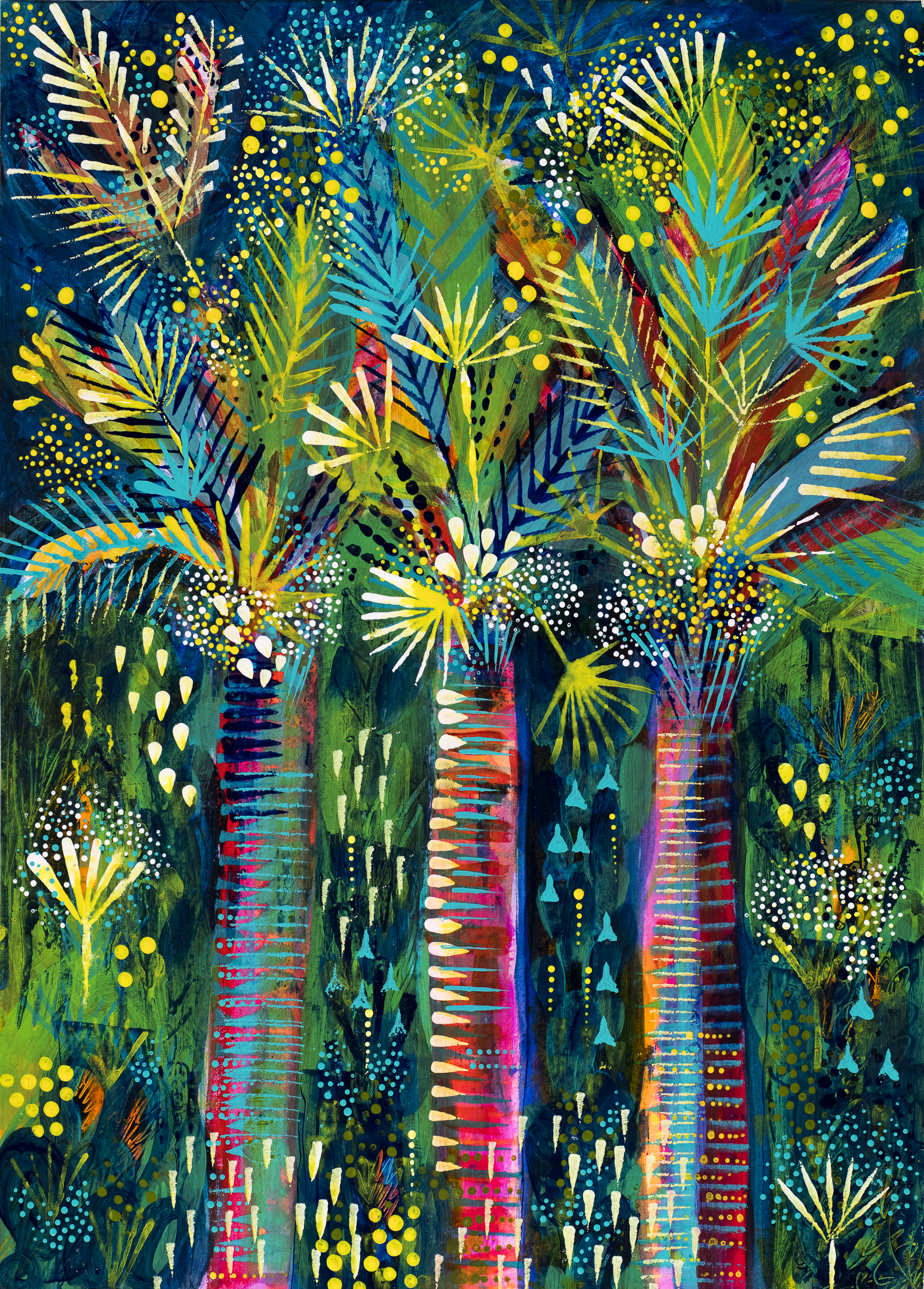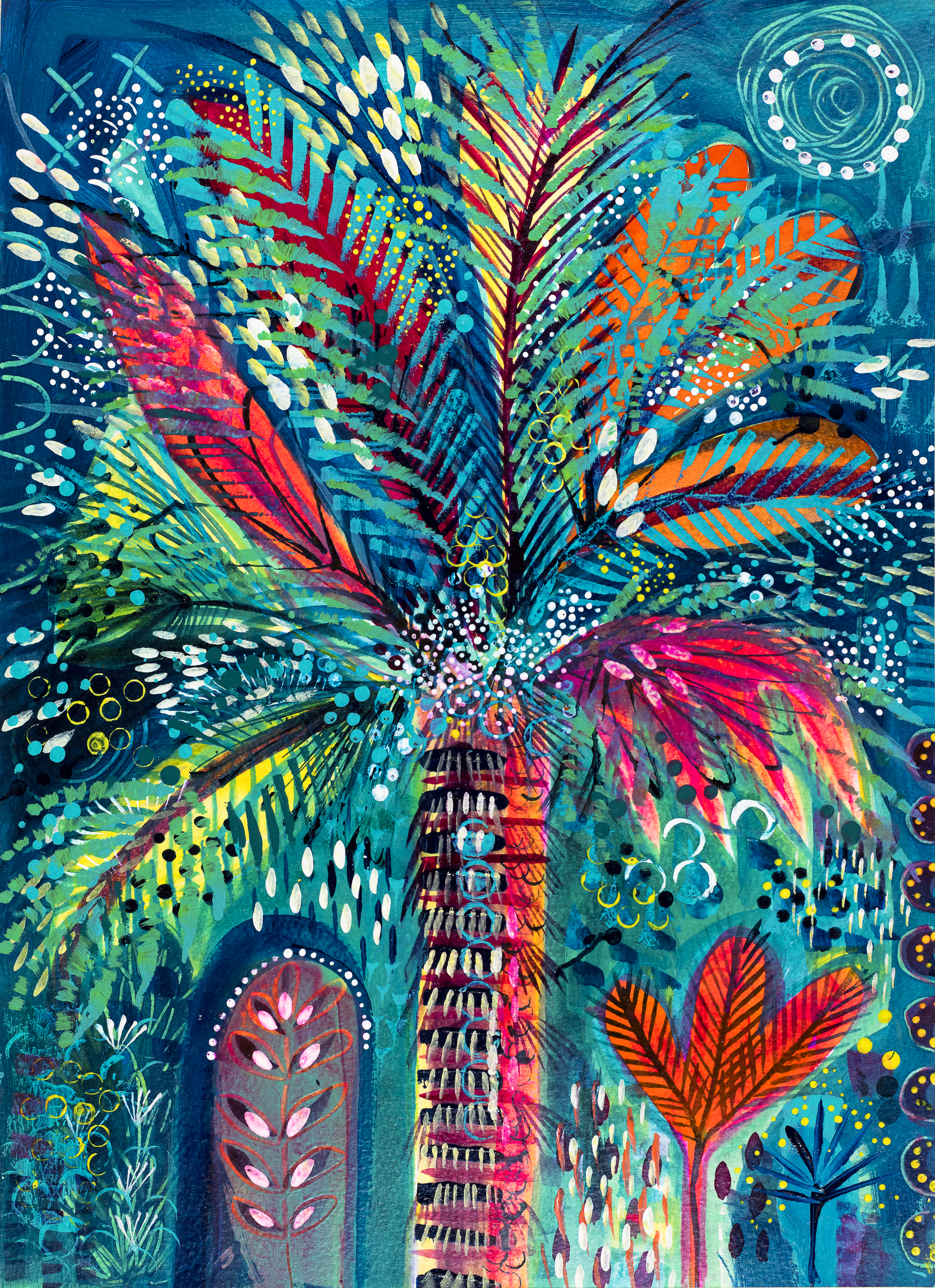 Between February and May 2021 I painted a palm tree every day for 100 days. Then in 2022 I painted 50 travel inspired paintings. These prints represent a collection from both series