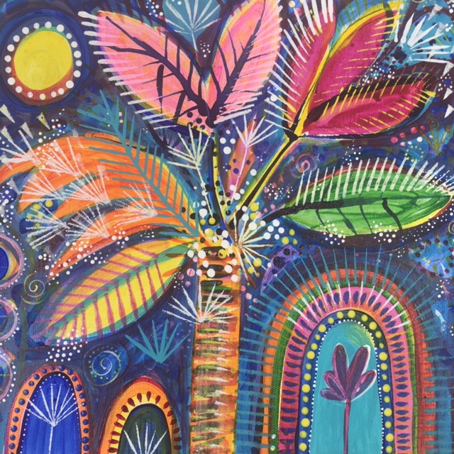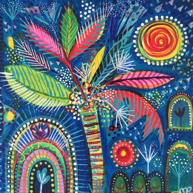 This Palm tree gallery shows the paintings (all sold) created during the lockdown of May and June 2020. The palm tree series were a response to the clipping of wings, a desire to travel but also a need to bring some optimistic colour into the world at a difficult time.